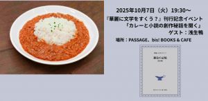 このたび『華麗に文学をすくう?』刊行を記念して、第6弾「銀色の記憶」とそのカレーを執筆・監修した浅生鴨さんをお招きしてイベントを開催します。
